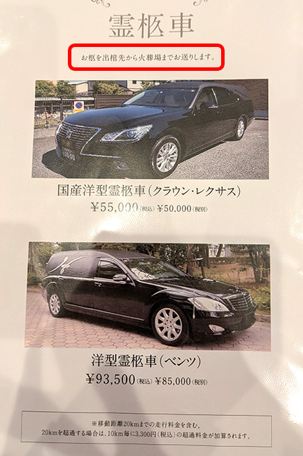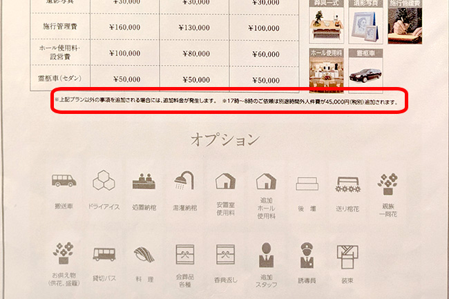 例えば棺のオプションだと、基本プランに設定されている棺は決まっていて、パンフレットに写真が載っていたりします。